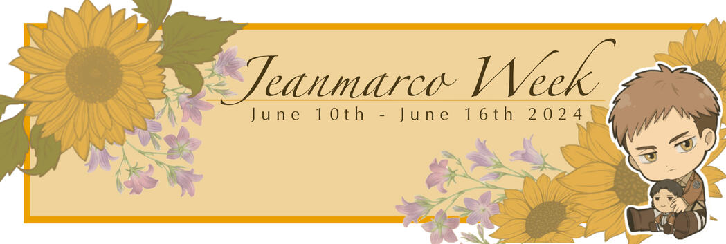 Jeanmarco Week is a ship week dedicated to the pair between Jean Kirstein and Marco Bodt. For a full week, creators will post works (art, fics, cosplays, edits, playlists, and more!) related to the ship using various contributor-voted prompts as inspiration.